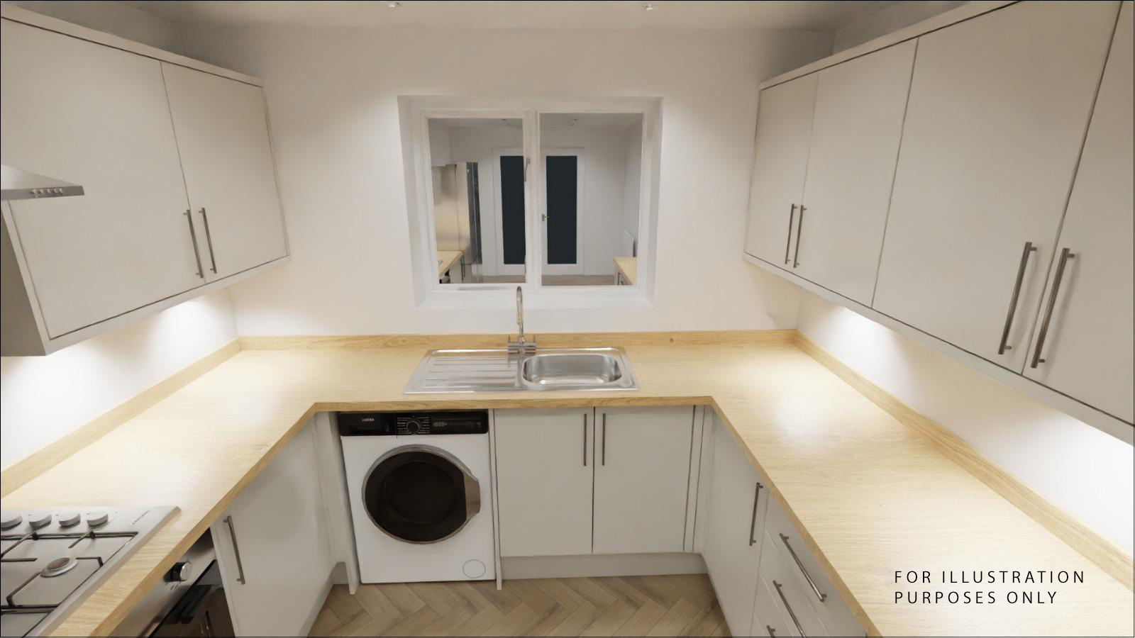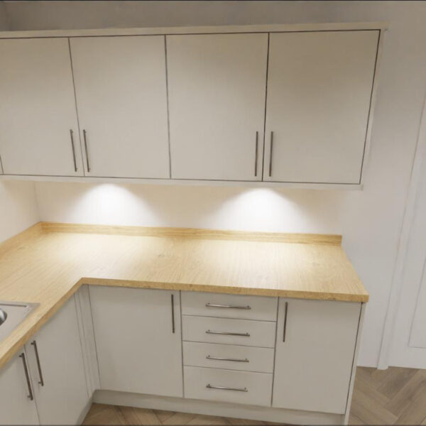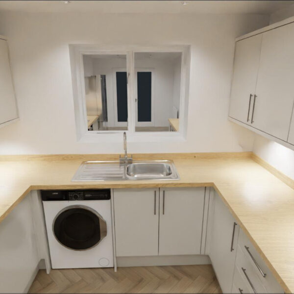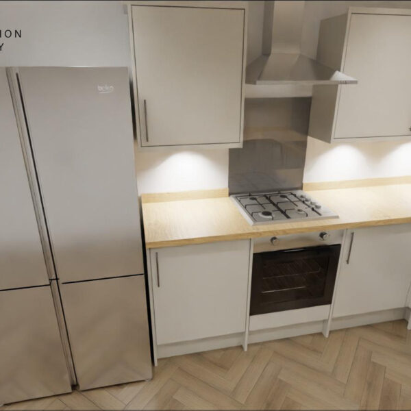 The kitchen shown in the images is a visualisation of the planned installation and has not yet been completed. Real photos of this fully renovated, high-end kitchen will be added once the work is finished.