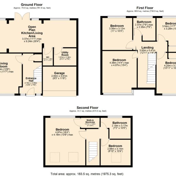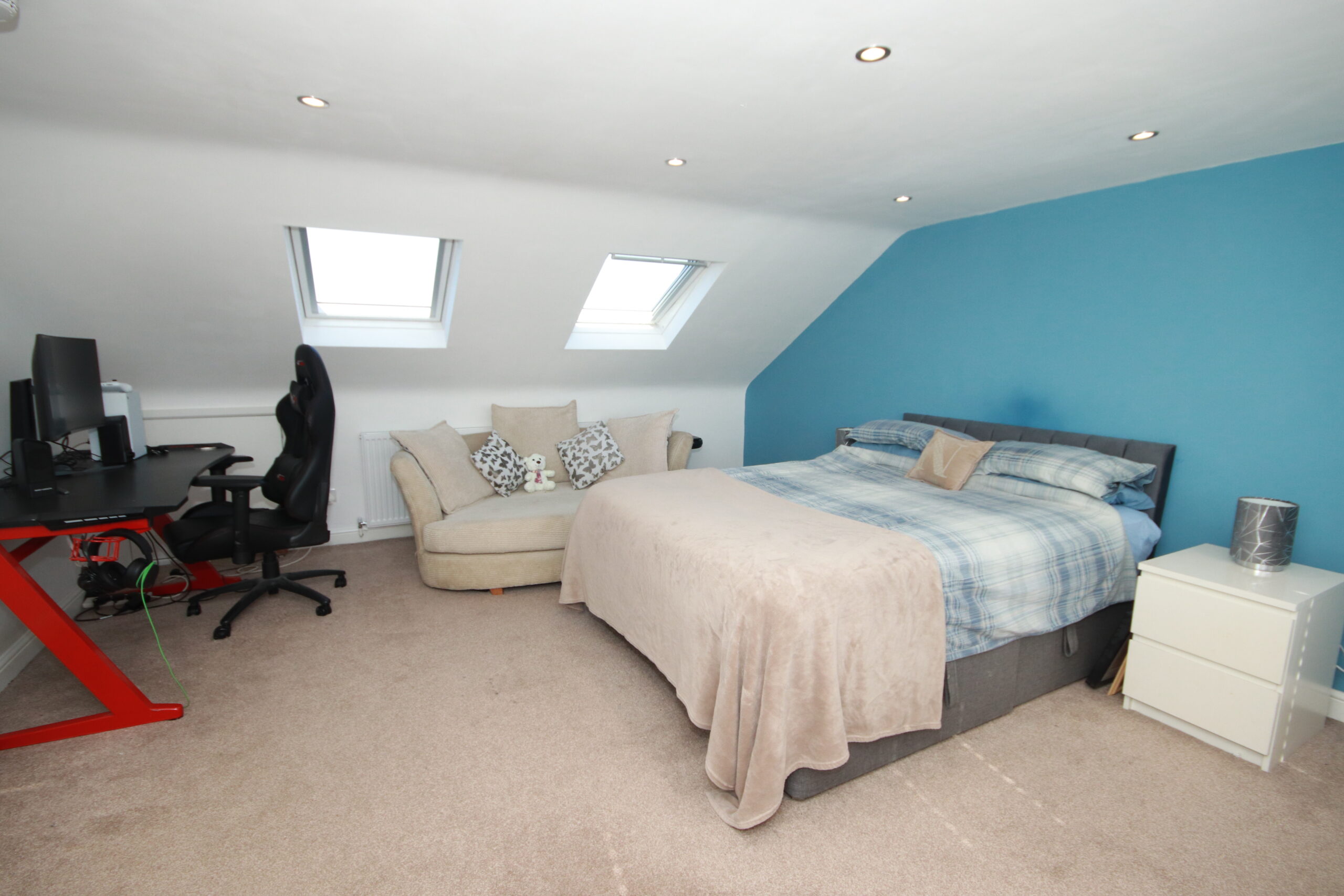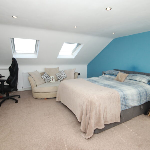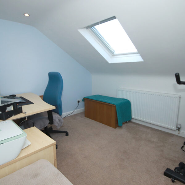The second floor offers further flexible accommodation, comprising a spacious double bedroom complete with a walk-in wardrobe, an additional family bathroom, and a good-sized single bedroom currently utilised as a home office.