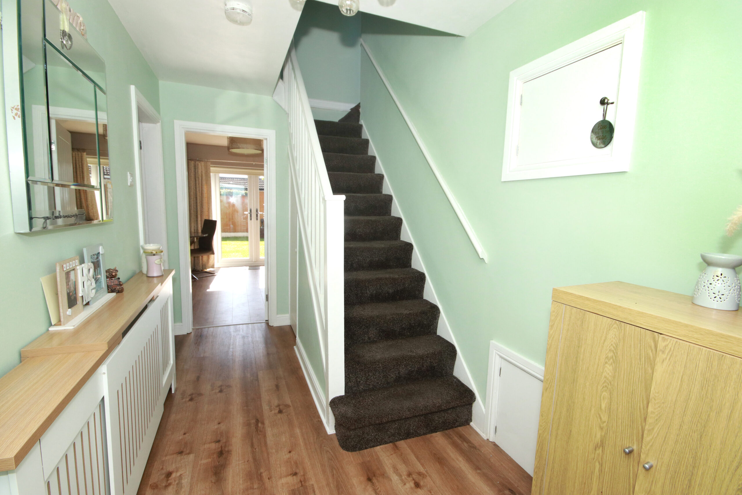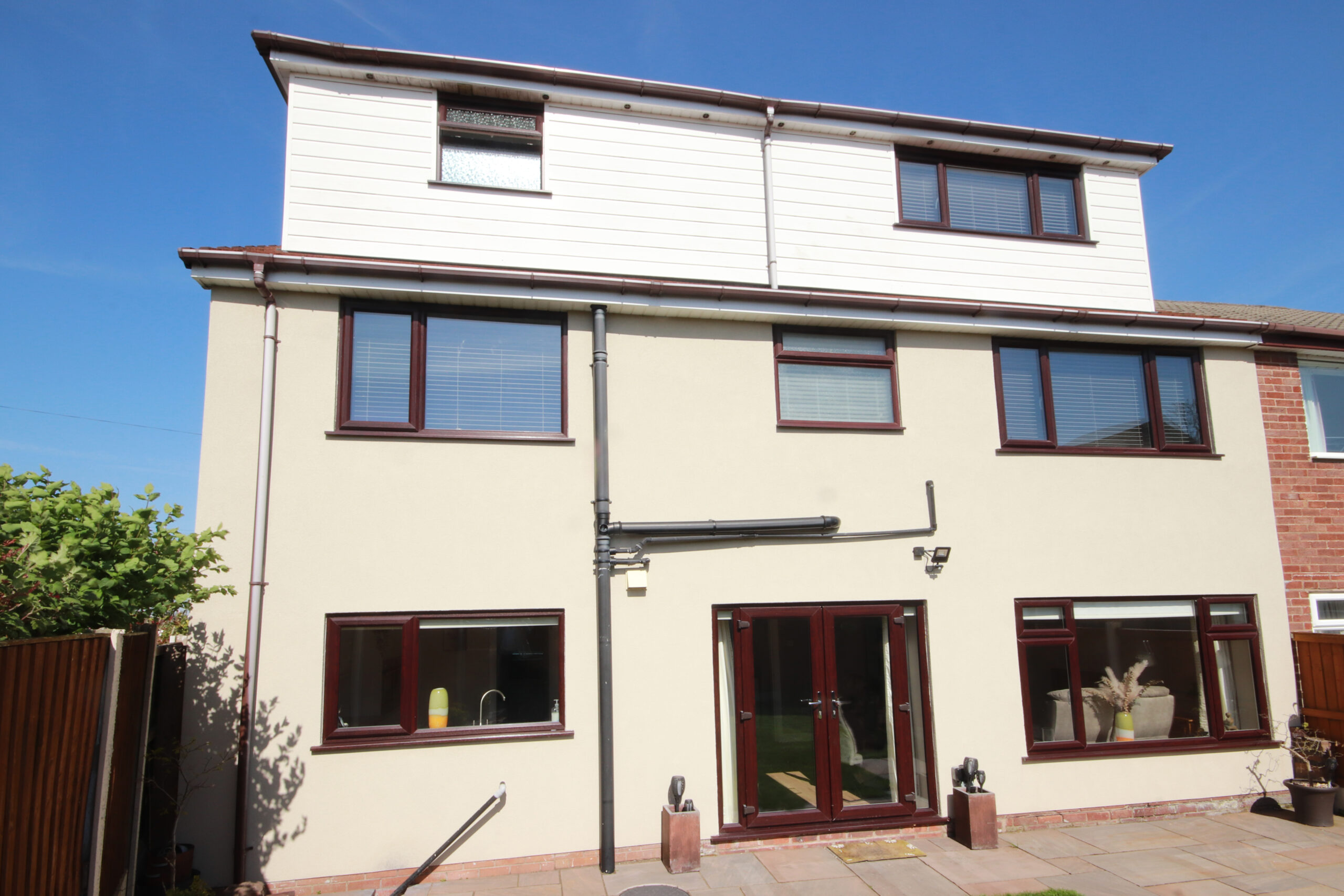 To the first floor, there are four well-proportioned double bedrooms, two of which benefit from fitted wardrobes, along with a sleek and modern family bathroom.
