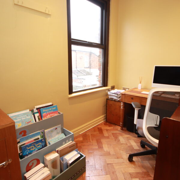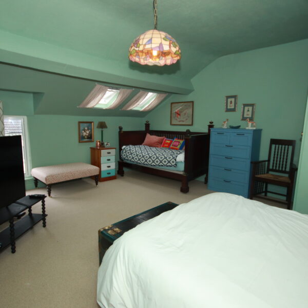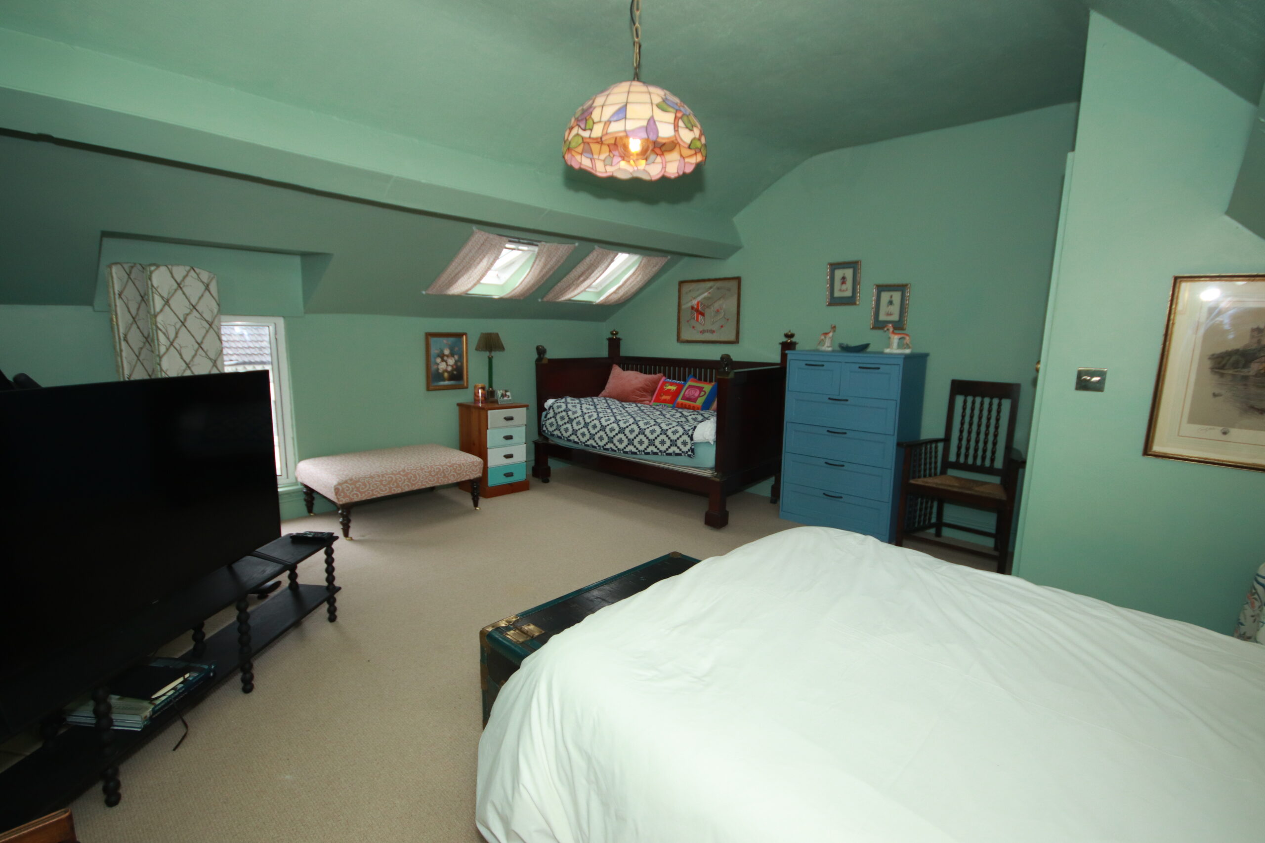 The first floor hosts three good-sized bedrooms, each offering comfortable accommodation, along with a family bathroom fitted with a suite suitable for modern living. Rising to the second floor, a landing leads to a spacious fourth bedroom, which could serve as a principal bedroom, guest room or home office, benefiting from a quiet and private position within the house.
