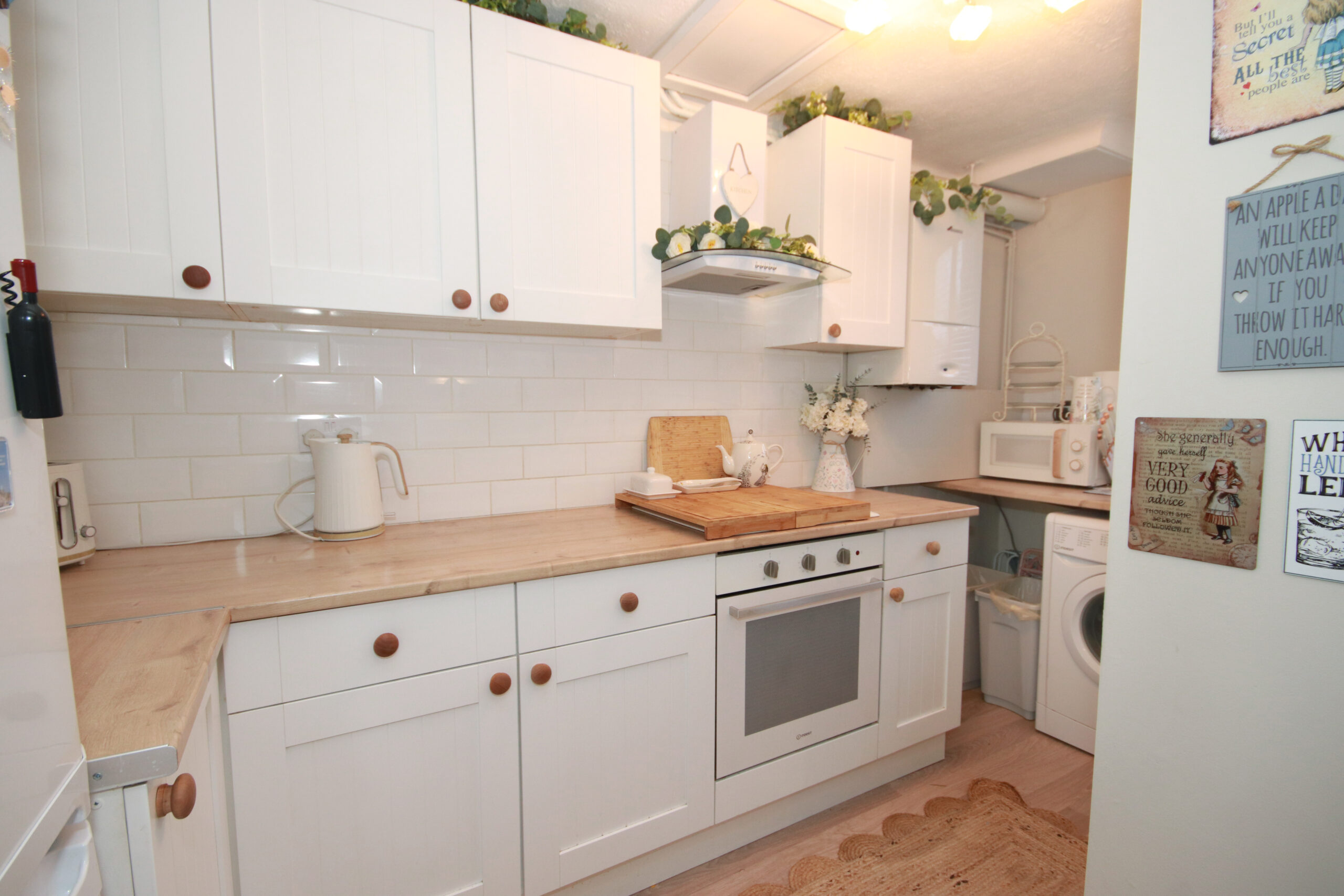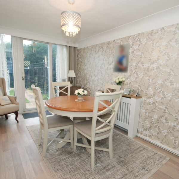 The property is entered via an entrance vestibule which leads into a bright and welcoming living room. This space flows seamlessly through to the rear dining area, creating an attractive open-plan layout that is perfect for both everyday living and entertaining. To the rear of the property is a contemporary fitted kitchen offering a range of modern units and work surfaces, with a patio door providing direct access to the garden.