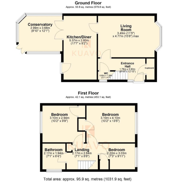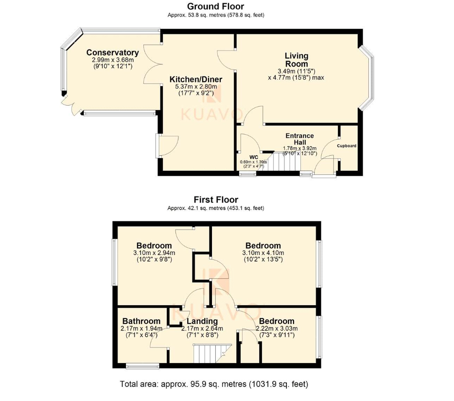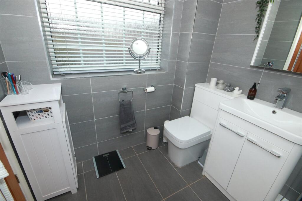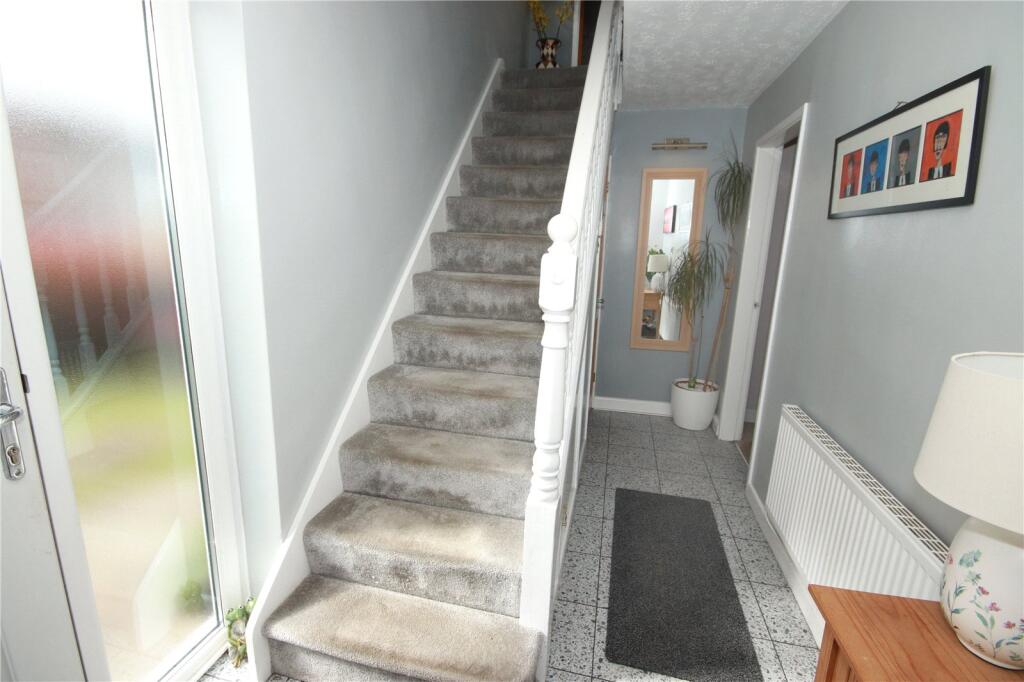 The property is entered via a welcoming entrance hall, complete with a useful storage cupboard and a convenient under-stairs WC. A doorway leads through to a bright and generously sized living room, providing a comfortable space for relaxation and entertaining. To the rear, the kitchen/diner is fitted with contemporary units and offers ample space for dining, making it the heart of the home. From here, there is direct access to the rear garden, along with French doors opening into a conservatory, creating an additional versatile reception area with pleasant garden views.