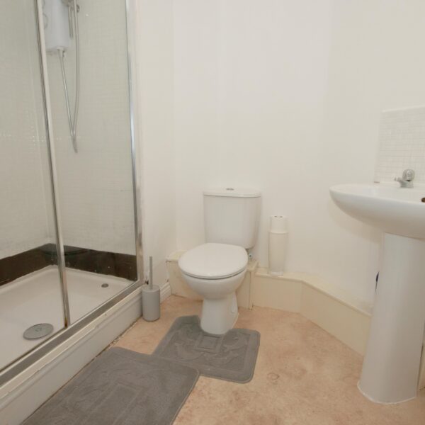 There are two generously sized bedrooms, with the main bedroom benefitting from a private en-suite shower room for added convenience. A modern family bathroom serves the second bedroom and guests.