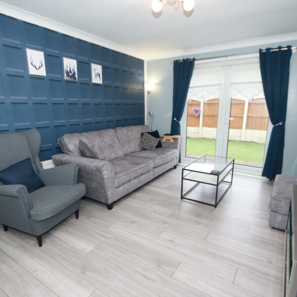 The property is entered via a welcoming entrance hall which leads through to a bright and generously proportioned lounge/dining room. This versatile living space is ideal for both relaxing and entertaining, with patio doors opening directly onto the rear garden, allowing plenty of natural light to flow through and creating a seamless connection between indoor and outdoor living. A doorway leads to a modern fitted kitchen, thoughtfully designed with a range of contemporary units and work surfaces, and benefiting from a doorway providing direct access to the rear garden.