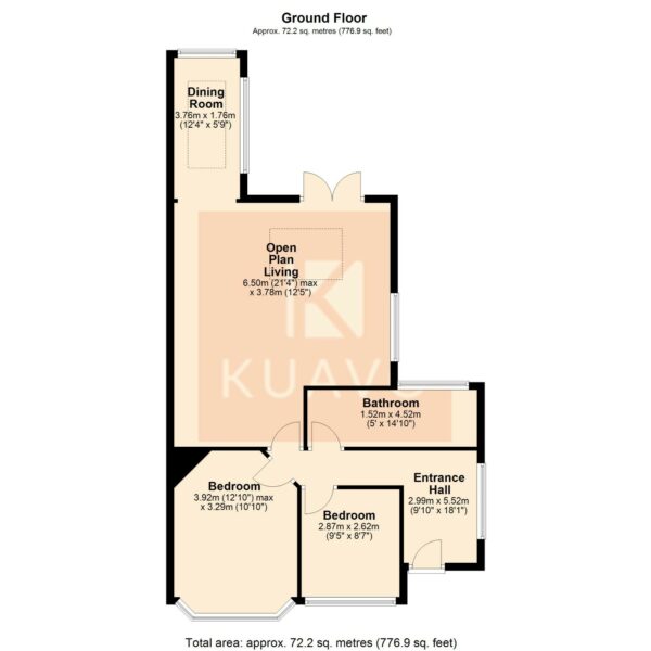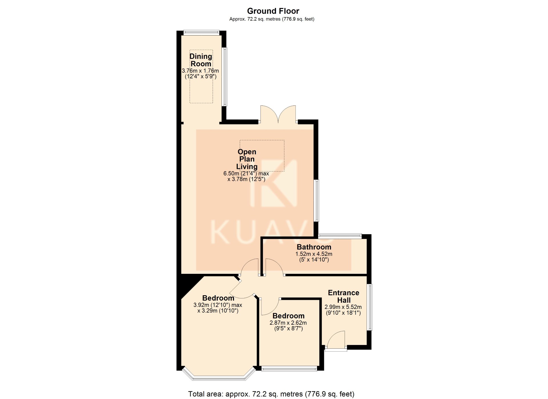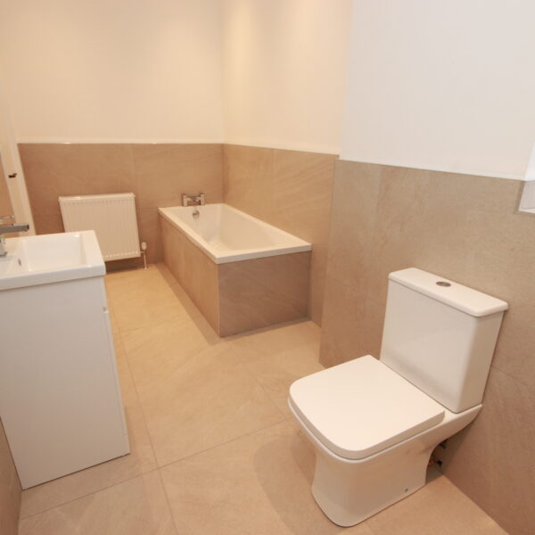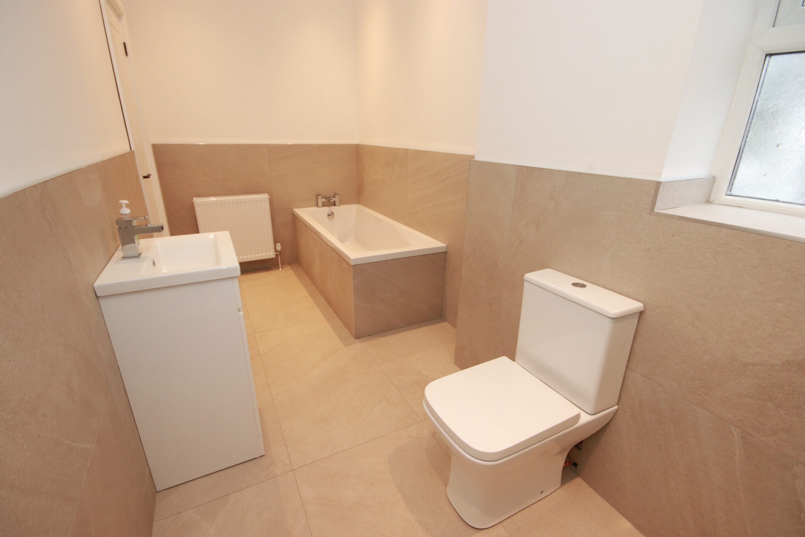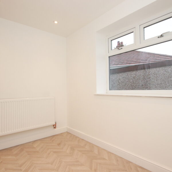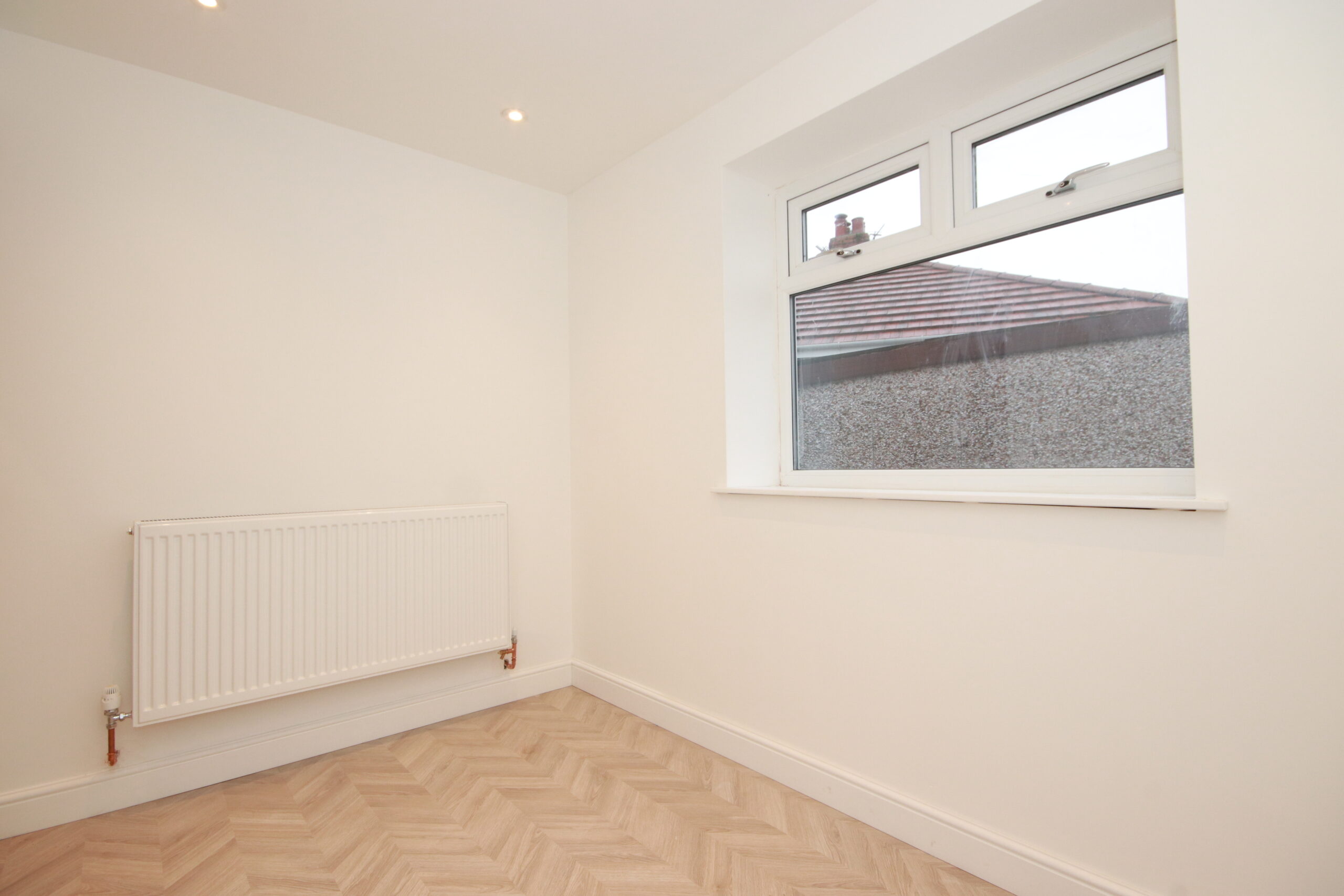 The accommodation begins with a welcoming entrance hallway, providing access to all principal rooms. To the front of the property are two well-proportioned bedrooms, both presented to a high standard and offering flexible use as sleeping accommodation or a home office if required. A spacious, newly fitted bathroom sits centrally within the bungalow and has been finished with modern fixtures and fittings, creating a sleek and relaxing space.