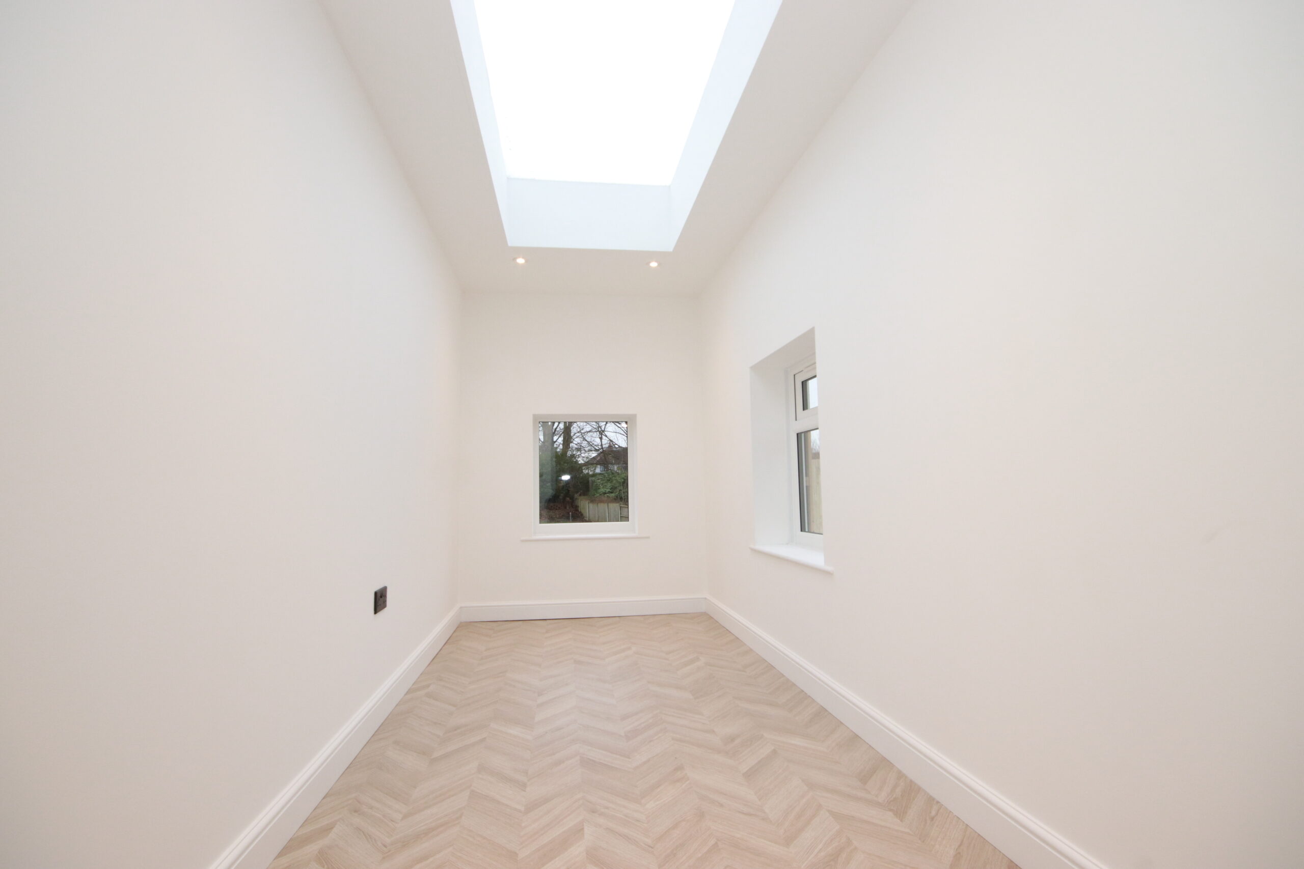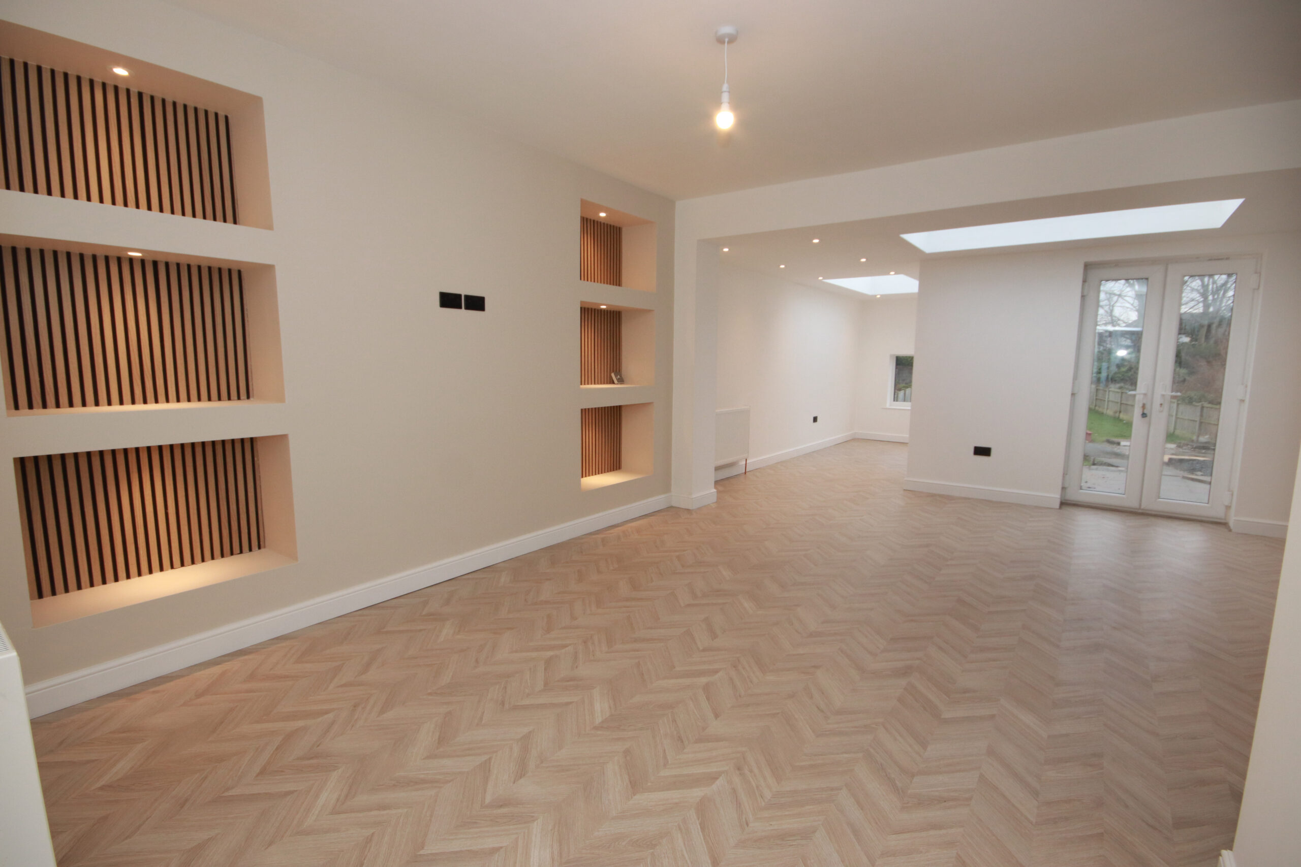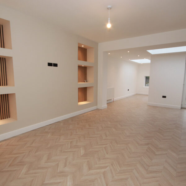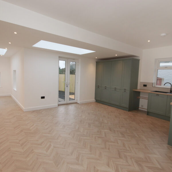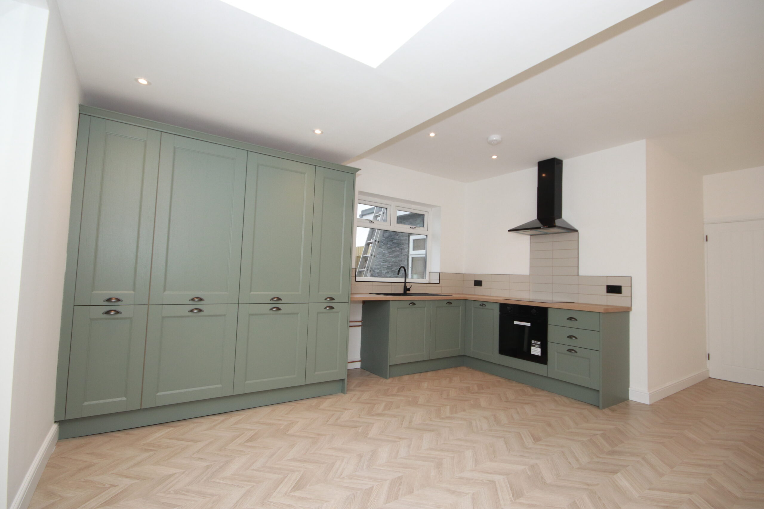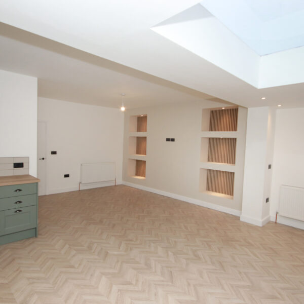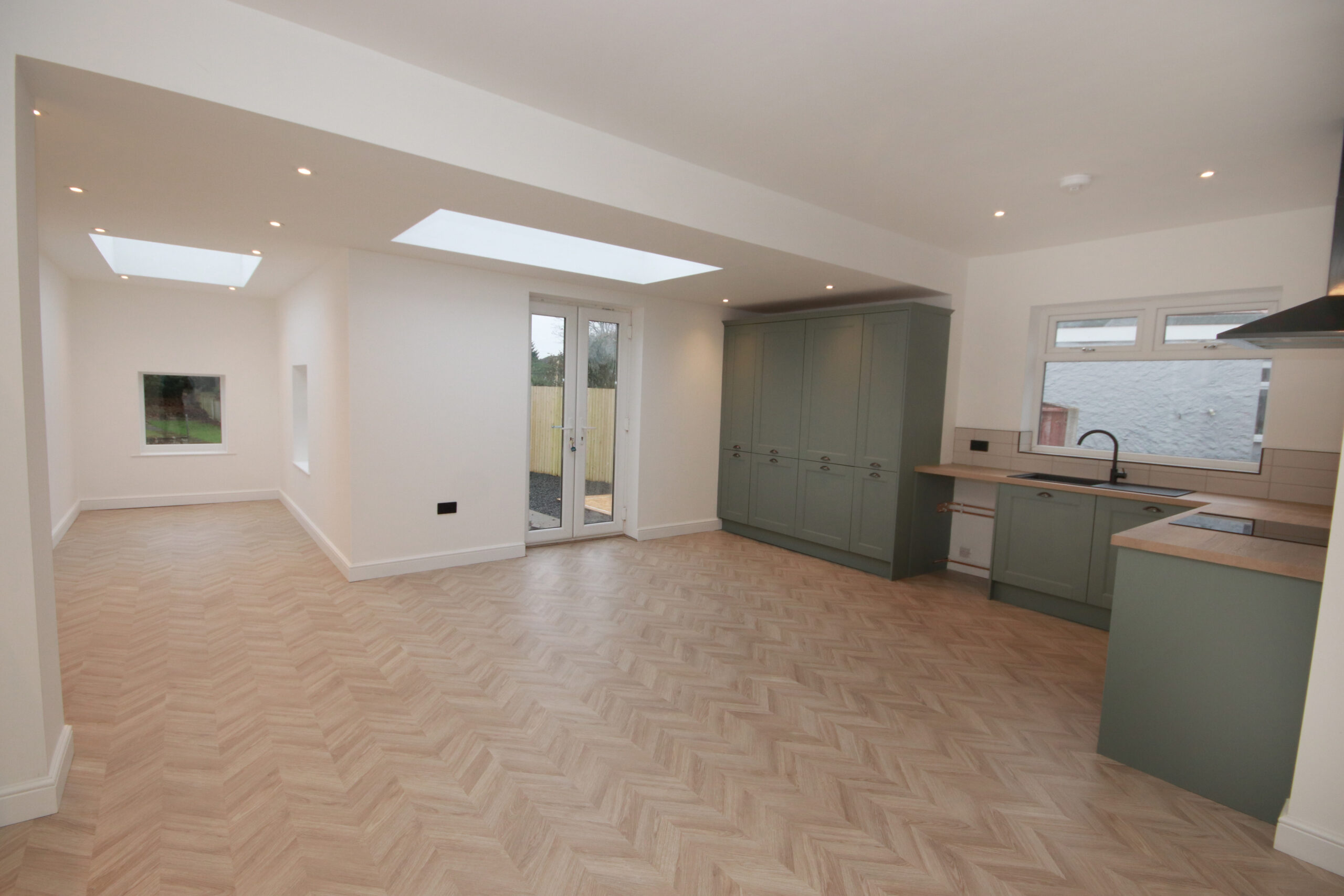 To the rear, the property truly impresses with a large open plan living area, ideal for modern lifestyles. This light-filled space incorporates a generous lounge and dining area, seamlessly flowing into a brand new fitted kitchen. Designed with both practicality and style in mind, the kitchen offers ample storage, contemporary units and quality work surfaces, making it perfect for both everyday living and entertaining.