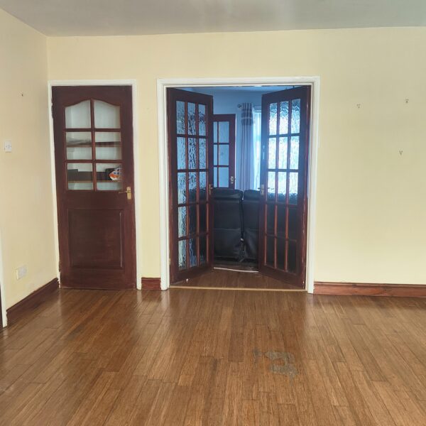 Upon entering, you are welcomed by an inviting entrance hall leading to a bright and airy front living room, which features double doors opening into a rear dining room or lounge – perfect for family gatherings or entertaining guests. To the front of the property, there is a versatile utility room that could easily serve as a home office or study. The well-proportioned kitchen to the rear is fitted with a range of modern units, providing ample storage and workspace, and leads through to a large conservatory that overlooks the garden, offering additional living or dining space flooded with natural light.