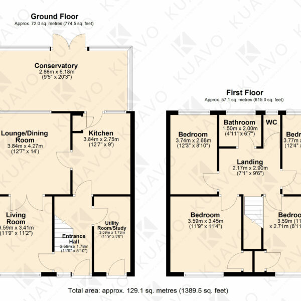 Upstairs, a spacious landing gives access to four well-sized bedrooms, including three generous doubles and a good-sized single. The accommodation is completed by a family bathroom and a separate WC for added convenience.