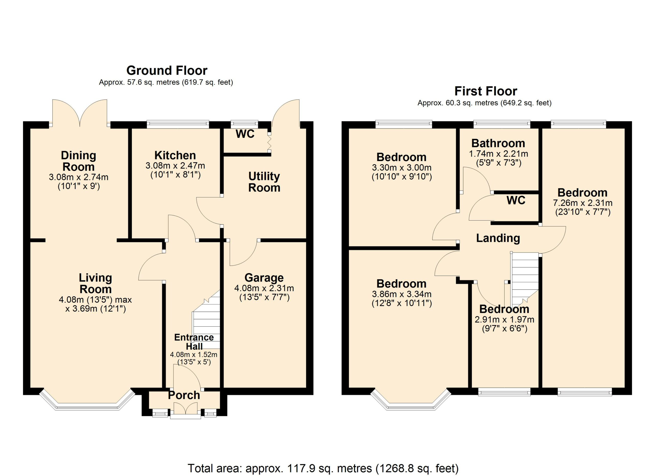 Upstairs, there are four good-sized bedrooms, all offering comfortable accommodation. The fourth bedroom forms part of the extension and is particularly spacious, with the potential to be divided to create a fifth bedroom or home office, subject to individual requirements. The family bathroom is complemented by a separate WC, a practical feature for busy households.