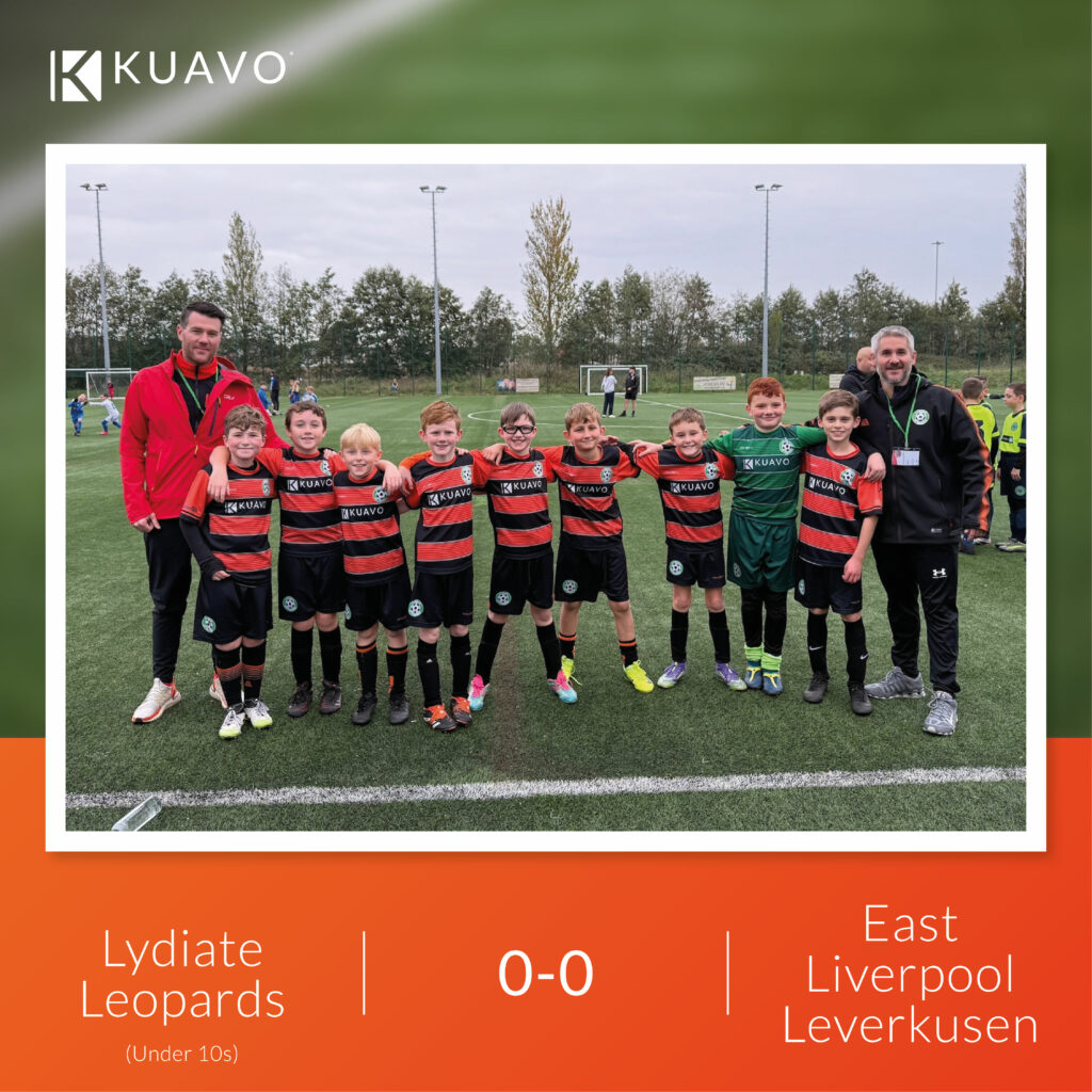 Lydiate battled to an entertaining and action-packed 0–0 draw against East Liverpool Leverkusen. Despite the scoreline, it was anything but a dull stalemate — the game was end-to-end with impressive saves from Arlo and some outstanding defensive teamwork across the pitch.